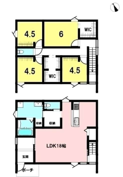 4LDK(LDK 18.0畳 1階 洋室 6.0畳 2階 洋室 4.5畳 2階 洋室 4.5畳 2階 )